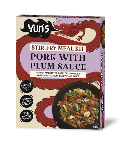 Marinated pork strips with a mix of colourful vegetables and a sachet of rich, aromatic plum sauce.